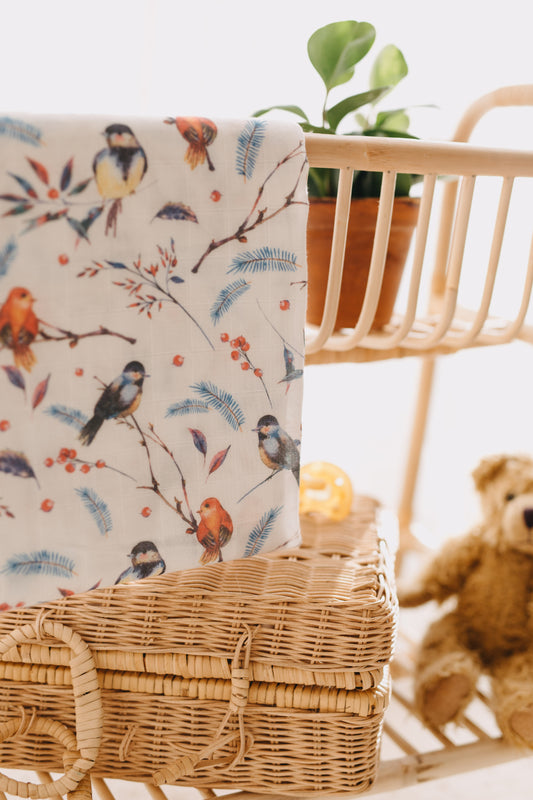Blue Leaves & Cornflower Classic Muslin Snuggle Blanket